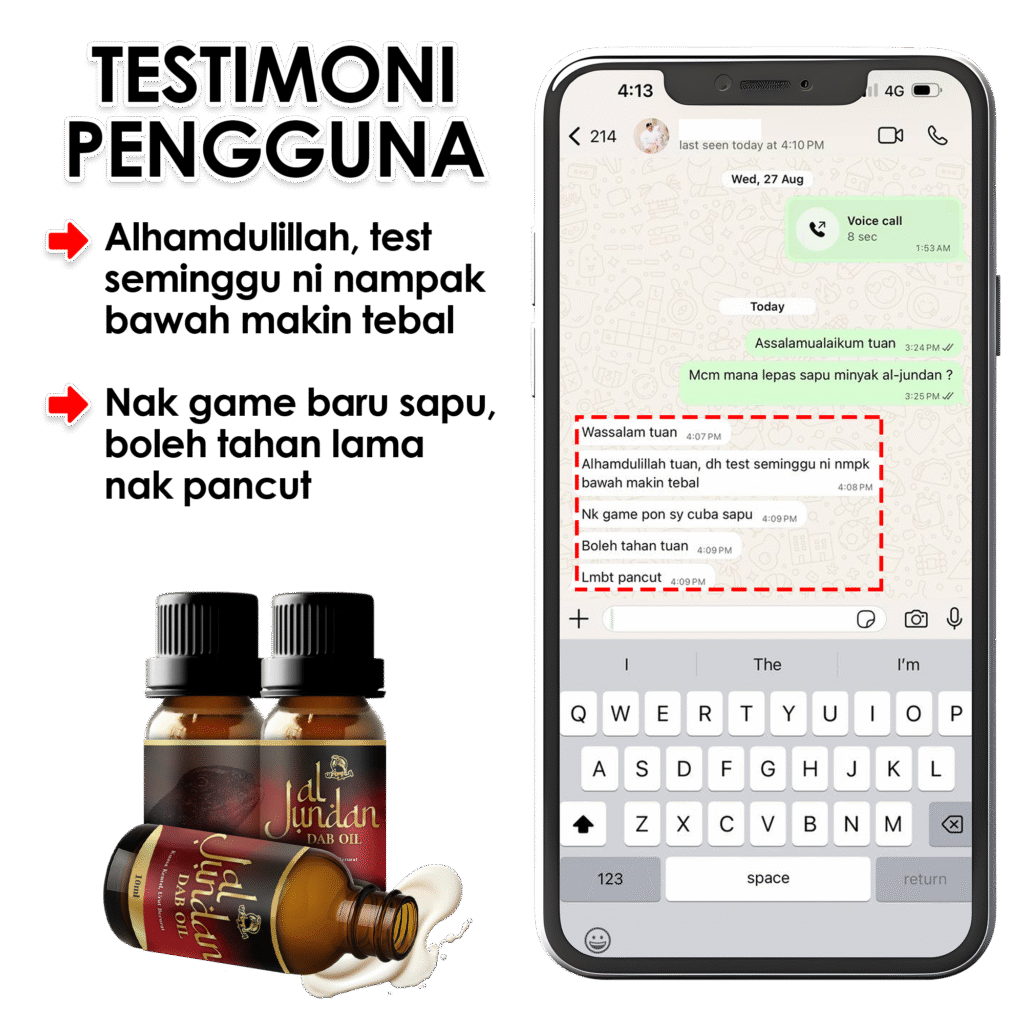 Kesan AL JUNDAN DAB OIL ambil masa 30 minit. Pastikan anda punyai KEINGINAN dan SYAHWAT untuk melakukan seks untuk rangsang erection zakar.
